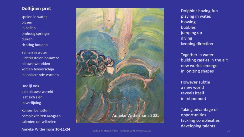 listen to the conversation Ineke Bergman, Anneke Wittermans and Suzan van der Voort (singer). Pause for reading the slides rekst mostly in Dutch and English.